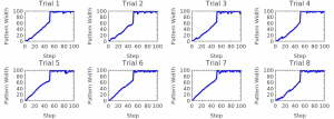Pattern Formation Insights: The width dynamics reveal how local perturbations evolve into global patterns. Some rules show width oscillations indicating breathing patterns, others show plateaus suggesting stable structures, and some show complex width dynamics indicating intricate pattern interactions.