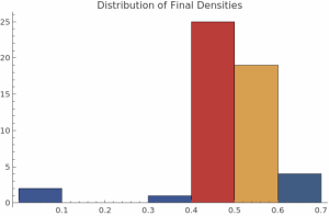 Ergodic Properties: Rules that produce similar statistical properties (like final density, pattern frequency, or structural measures) across different random starts may have ergodic properties, where long-term averages are independent of initial conditions.